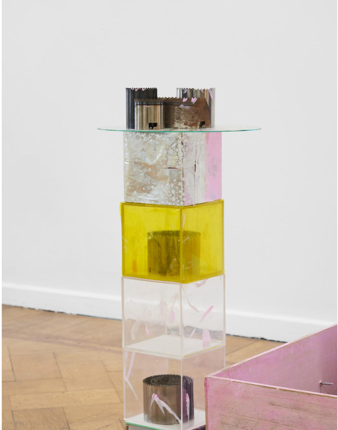 Justin Cloud. Bisou. Steel, suede, and ornamental glass.
